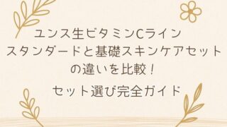 ユンスの生ビタミンCライン「スタンダードセット」と「基礎スキンケアセット」の違いを徹底比較!どっちを選べばいいか迷っている方に向けて、セット内容や使いやすさをやさしく解説します。